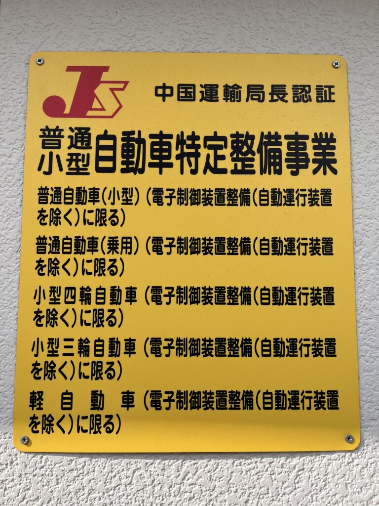 特定整備認証工場です。